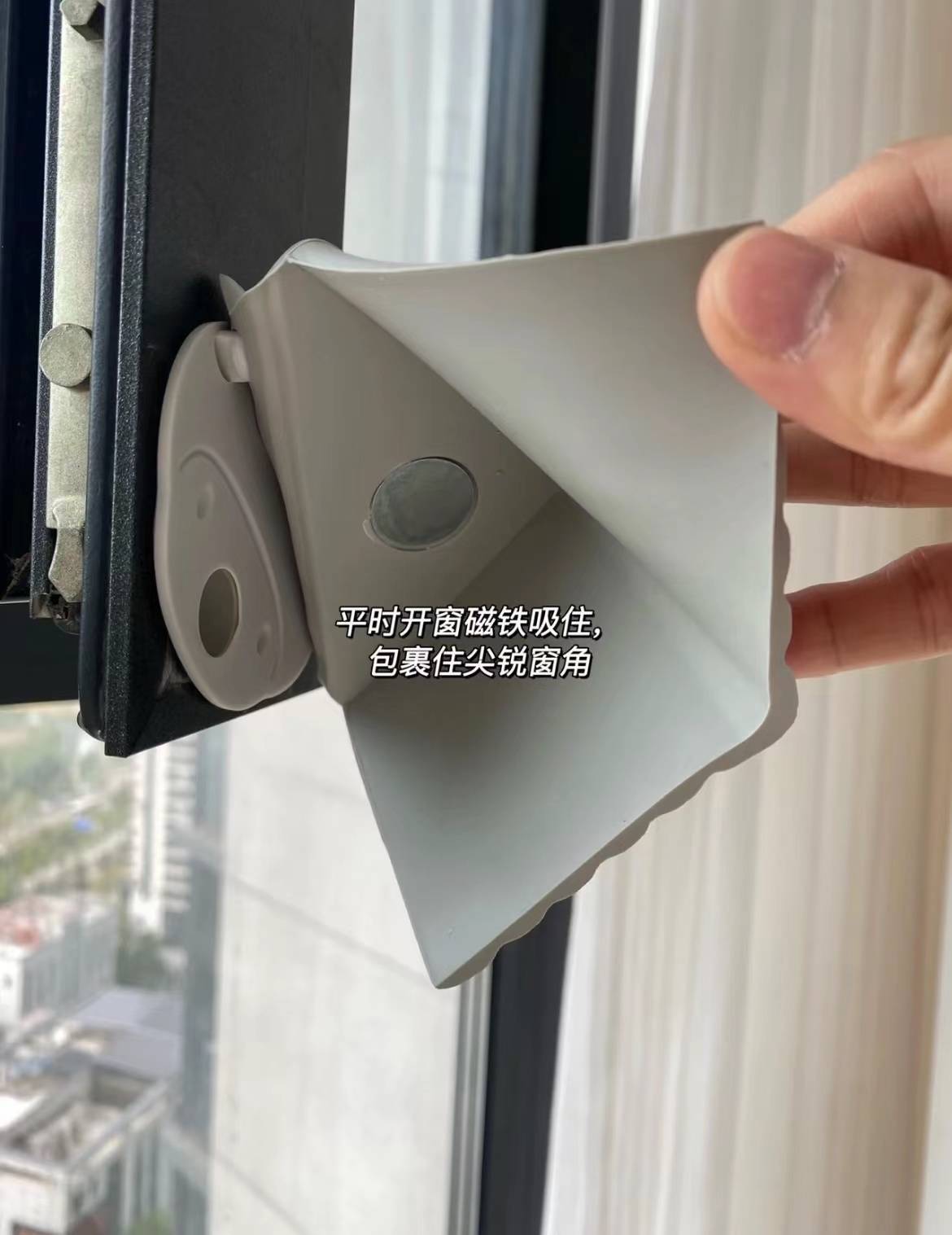 掀开窗户时,两片磁铁自动吸附,厚厚的硅胶折角,会自动趴在机敏的窗角上,包裹的严严密实,给足了安全感。