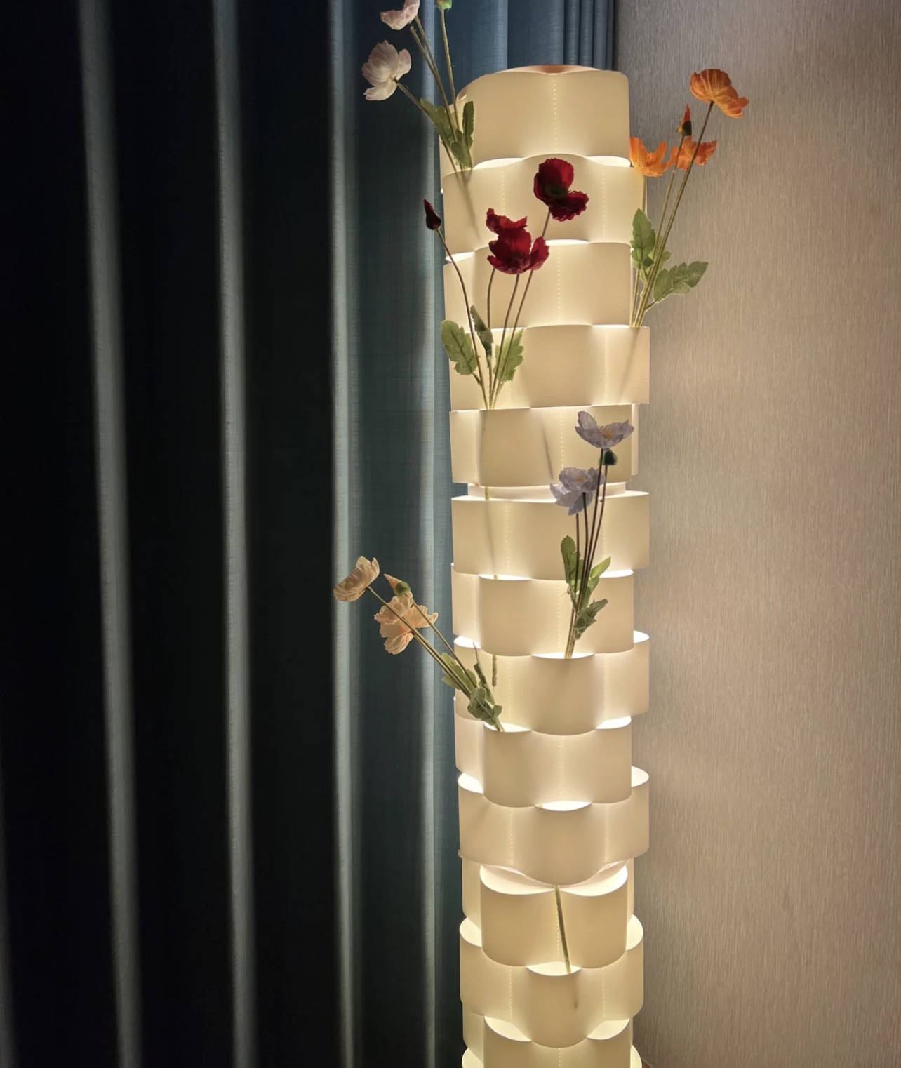 另外,加一些假花遮挡,关了灯也不会单调,更有内味儿了。