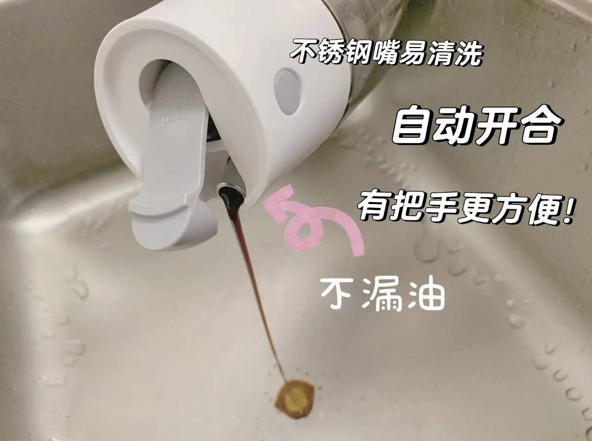 略微跳动瓶盖极少的运筹帷幄,在倒油的时辰不漏油,这点比拟其它油壶,就免去了再清洁出油嘴的繁难。