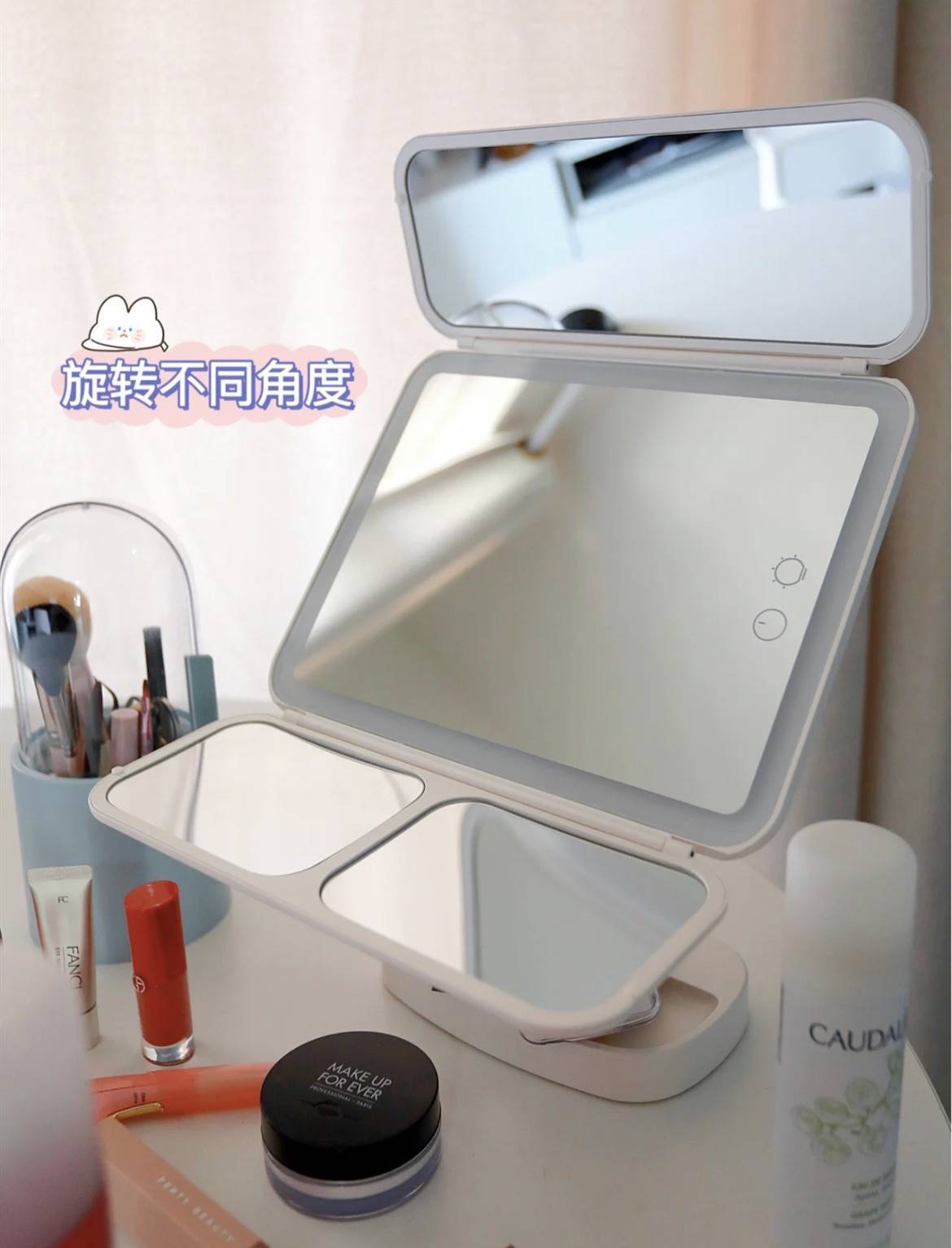 既然挂在墙壁上的镜子餍足不了需求,那不错给桌面上增多一个化妆镜啊。