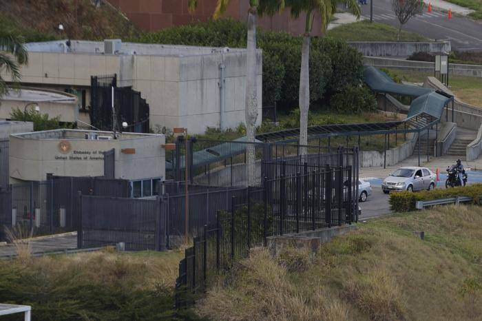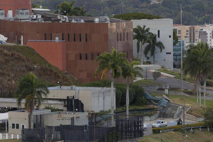 这是1月9日在委内瑞拉王人门加拉加斯拍摄的好意思国驻委内瑞拉大使馆馆舍。新华社发