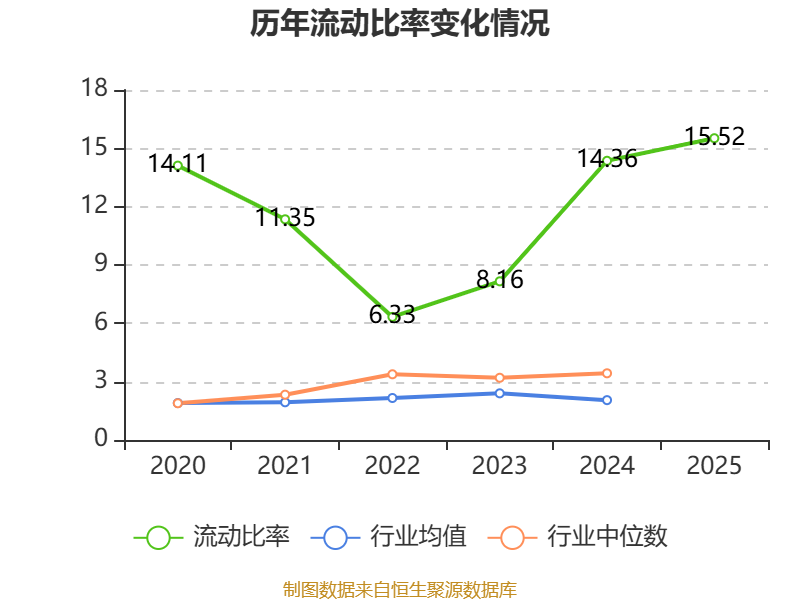 2025年,公司流动比率为15.52,速动比率为11.13。