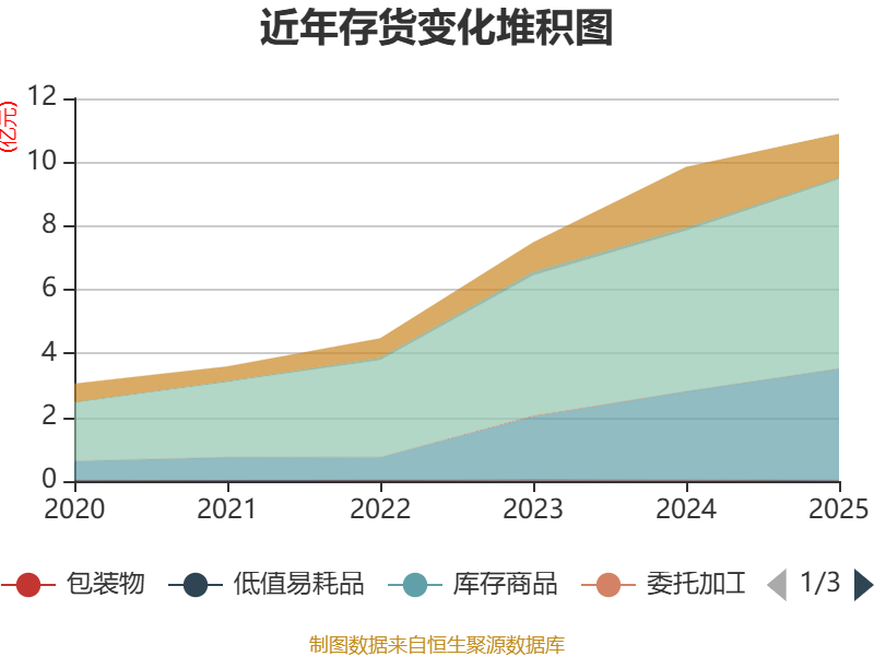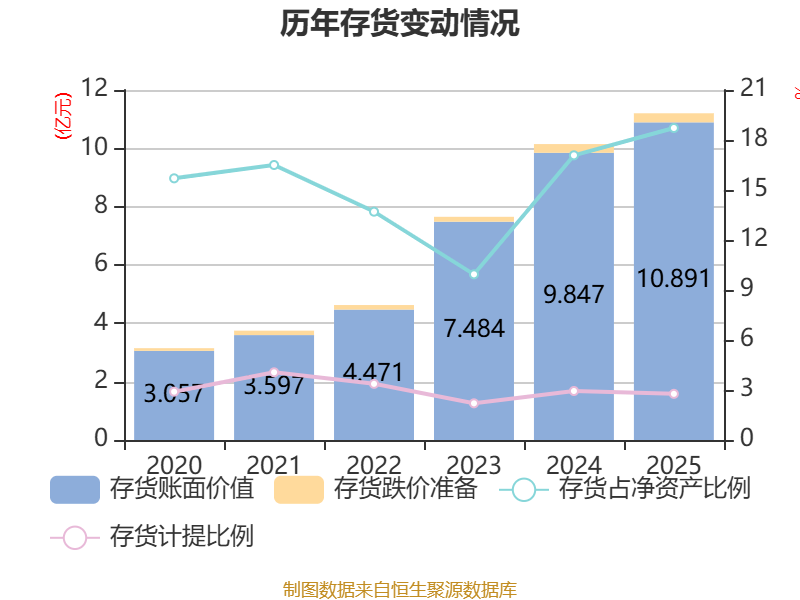 从存货变动来看,按捺2025年末,公司存货账面价值为10.89亿元,占净钞票的18.72%,较上年末增多1.04亿元。其中,存货跌价准备为3106.59万元,计提比例为2.77%。