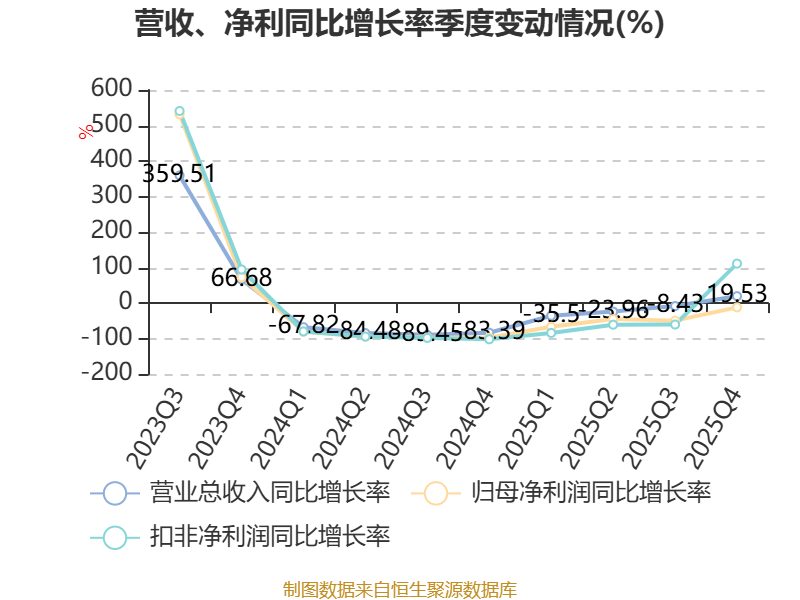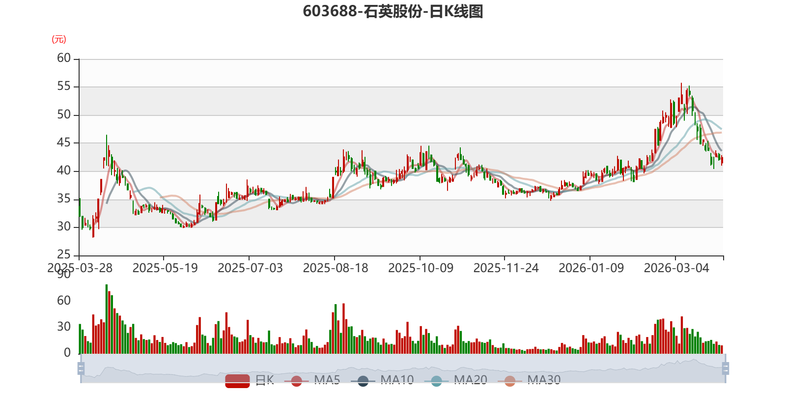 中证智能财讯石英股份(603688)3月28日败露2025年年度弘扬。2025年,公司竣事贸易总收入10.08亿元,同比下落16.71%;归母净利润1.53亿元,同比下落54.03%;扣非净利润7746.6万元,同比下落71.70%;筹谋当作产生的现款流量净额为-5983.5万元,上年同时为8.29亿元;弘扬期内,石英股份基本每股收益为0.28元,加权平均净钞票收益率为2.65%。公司2025年度分拨预案为:拟向整体鼓吹每10股派现0.86元(含税)。
