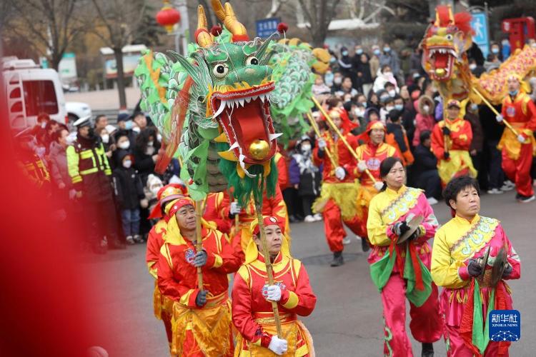 2月2日,龙饱读方阵演员在河北省石家庄估客陉矿区举办的民间花会展演步履中进行踩街巡演。