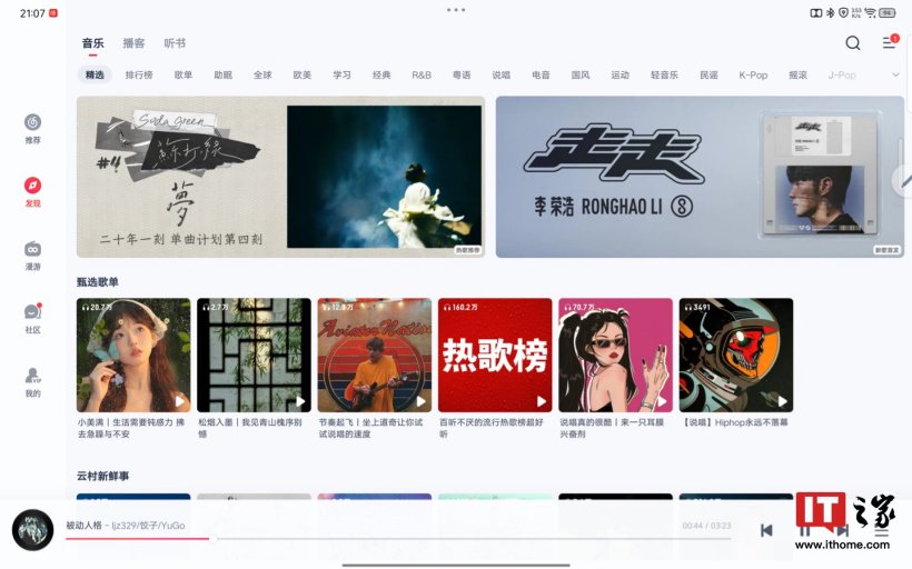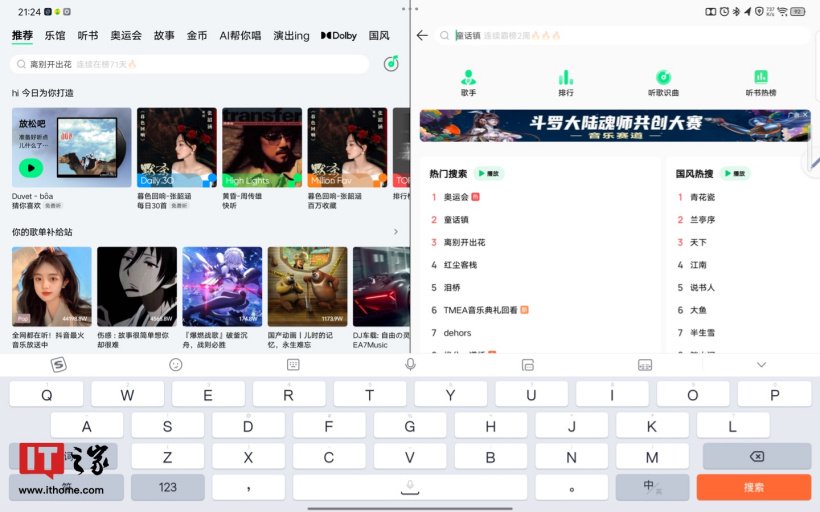 软件方面,经笔者测试,网易云音乐完竣适配了横屏和竖屏场景,QQ 音乐则会调起平行视界。