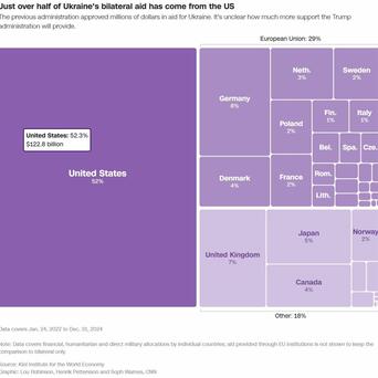 【好意思国的兵器和资金,对泽连斯基有多伏击?】底下第一张图,便是列国救济的比例,甘休到前年底,好意思国提供了1228亿好意思元,占比约为52.3%。是以,莫得好意思国参与确定有很大影响。德国8%、英国7%、日本5%、加拿大和丹麦4%,法国独一2%。