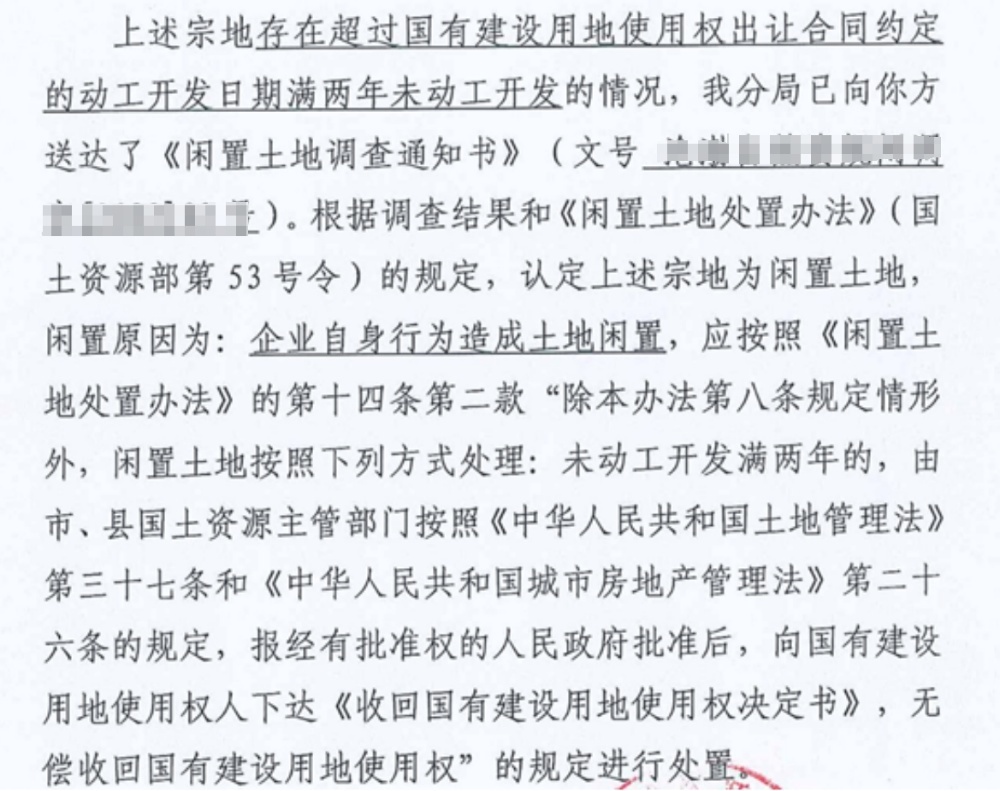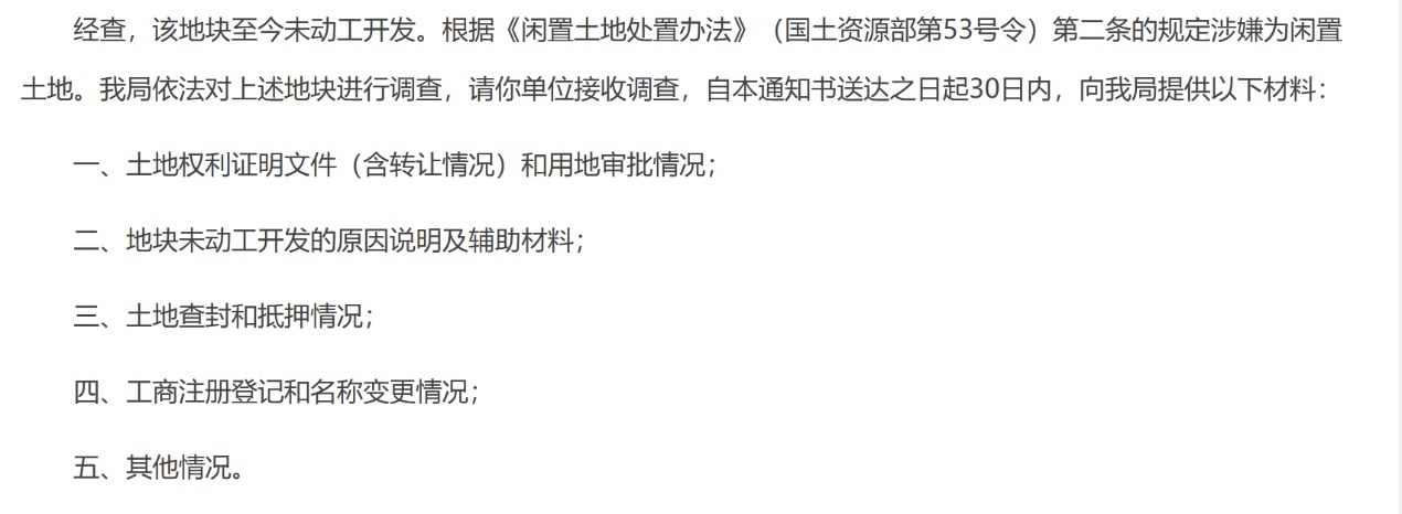 (某地国土资源独揽部门作出的《闲置地皮访问讲述书》)